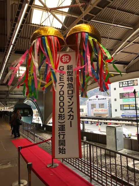 昨日は、箱根湯本駅でロマンスカー到着式典に参加させていただき、新型ロマンスカーで箱根にお越しになったお客様を各旅館の皆様でお迎えさせていただきました。