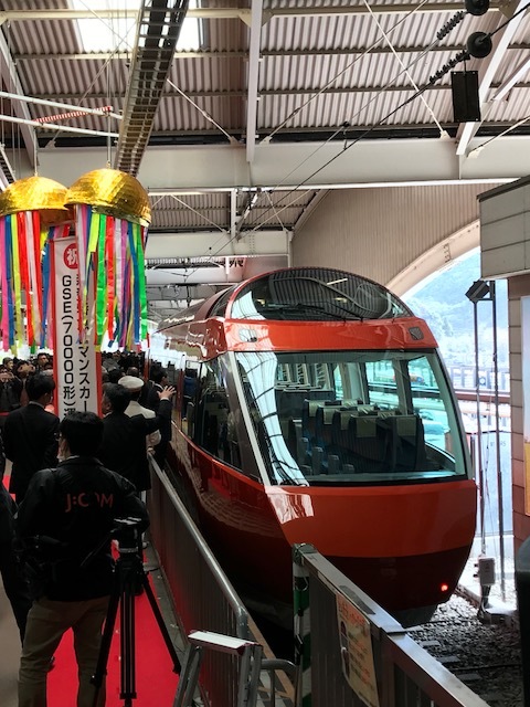 昨日は、箱根湯本駅でロマンスカー到着式典に参加させていただき、新型ロマンスカーで箱根にお越しになったお客様を各旅館の皆様でお迎えさせていただきました。