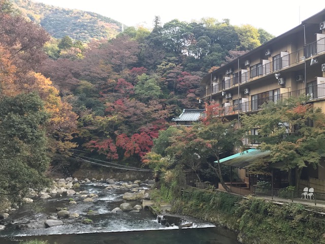 箱根湯本から塔ノ沢にかけての紅葉も色づき始めました。